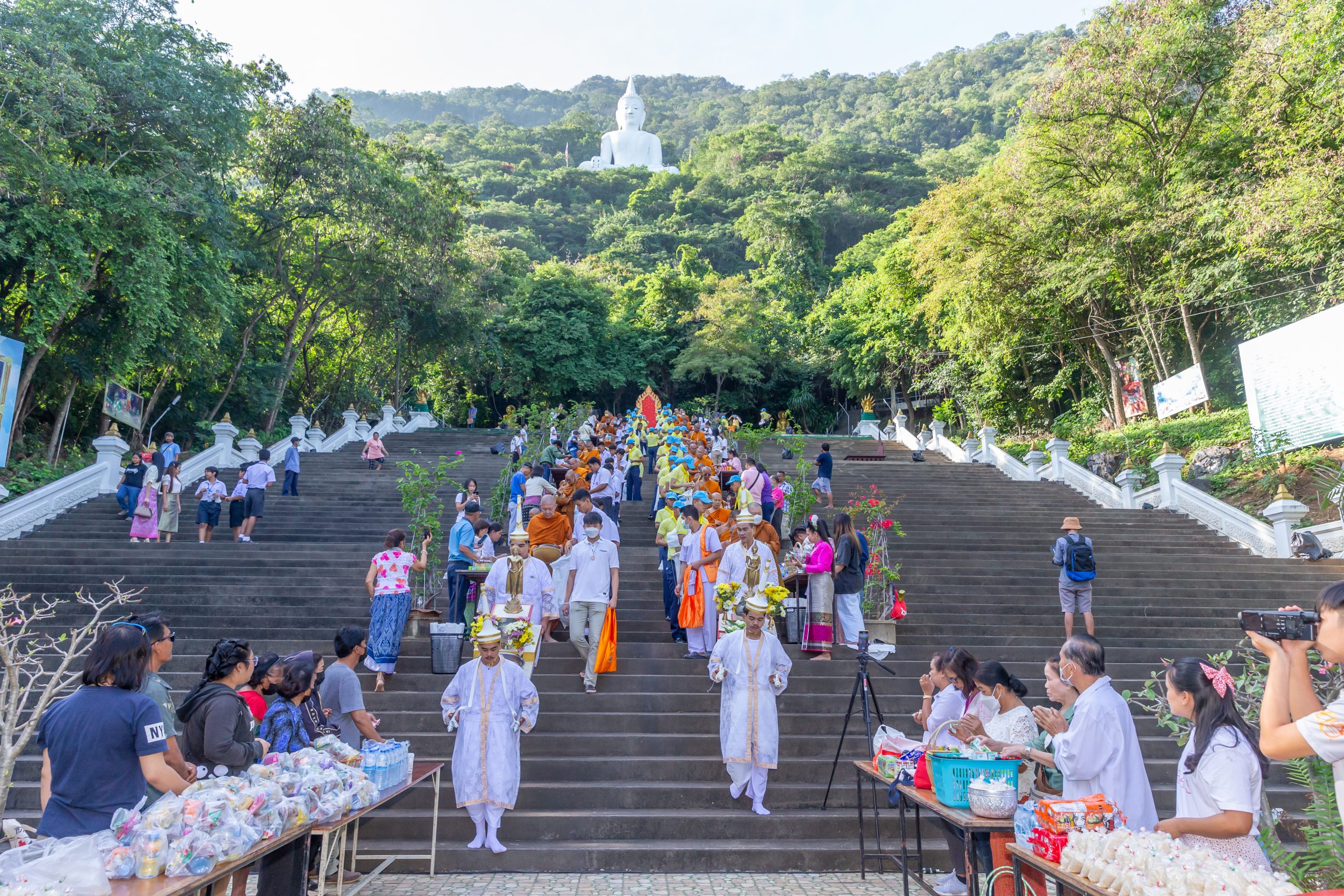 งานบุญพรรษาใหญ่โคราช ตักบาตรเทโวโรหณะ2568 วัดหลวงพ่อพระขาว 11-12 ตุลาคม 2568 วัดเทพพิทักษ์ปุณณาราม งานบุญพรรษาตักบาตรเทโวโรหณะ ประจำปี พ.ศ.2568 มหาศรัทธา บูชาพระพุทธสกลสีมามงคล วันที่ 11 – 12 ตุลาคม 2568 ตั้งแต่เวลา 08:00 น. เป็นต้นไป ณ วัดเทพพิทักษ์ปุณณาราม (วัดหลวงพ่อพระขาว) กิจกรรมภาคเช้า ตักบาตรเทโวโรหณะ พระภิกษุสงฆ์ 139 รูป ยิ่งใหญ่ตระการตา มีขบวนแห่ เทวดา นางฟ้า อัญเชิญ นำขบวนพระภิกษุ รับบิณฑบาต จากบันไดที่ประดิษฐานพระพุทธสกลสีมามงคล กิจกรรมภาคกลางคืน การแสดง แสง เสียง ชุดมหาศรัทธา บูชาพระพุทธสกลสีมามงคล มีนักแสดงกว่า 100 ชีวิต พบแสง เสียง สุดอลังการ ในอำเภอปากช่อง จังหวัดนครราชสีมา วันที่ 11 ตุลาคม 2568 ตักบาตรข้าวสารอาหารแห้ง วันที่ 11 – 12 ตุลาคม 2568 การแสดง แสง เสียง ชุดมหาศรัทธาบูชาพระพุทธสกลสีมามงคล เทศบาลตำบลสีมามงคล 044-361444