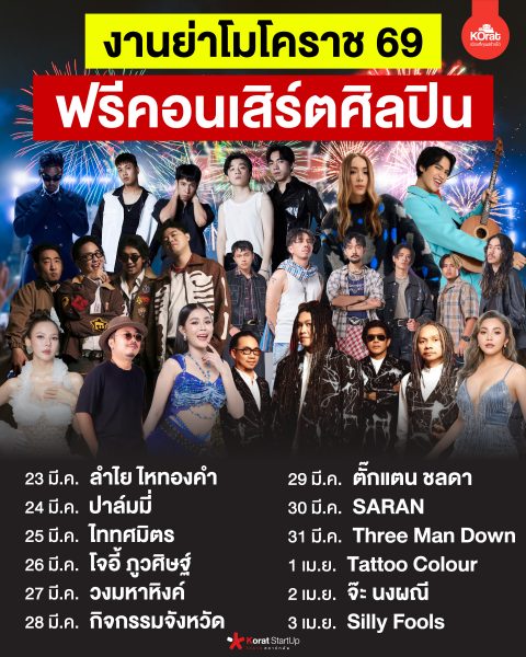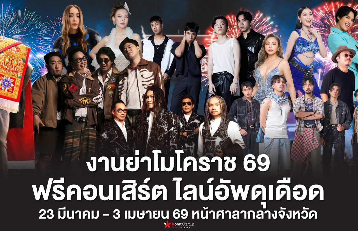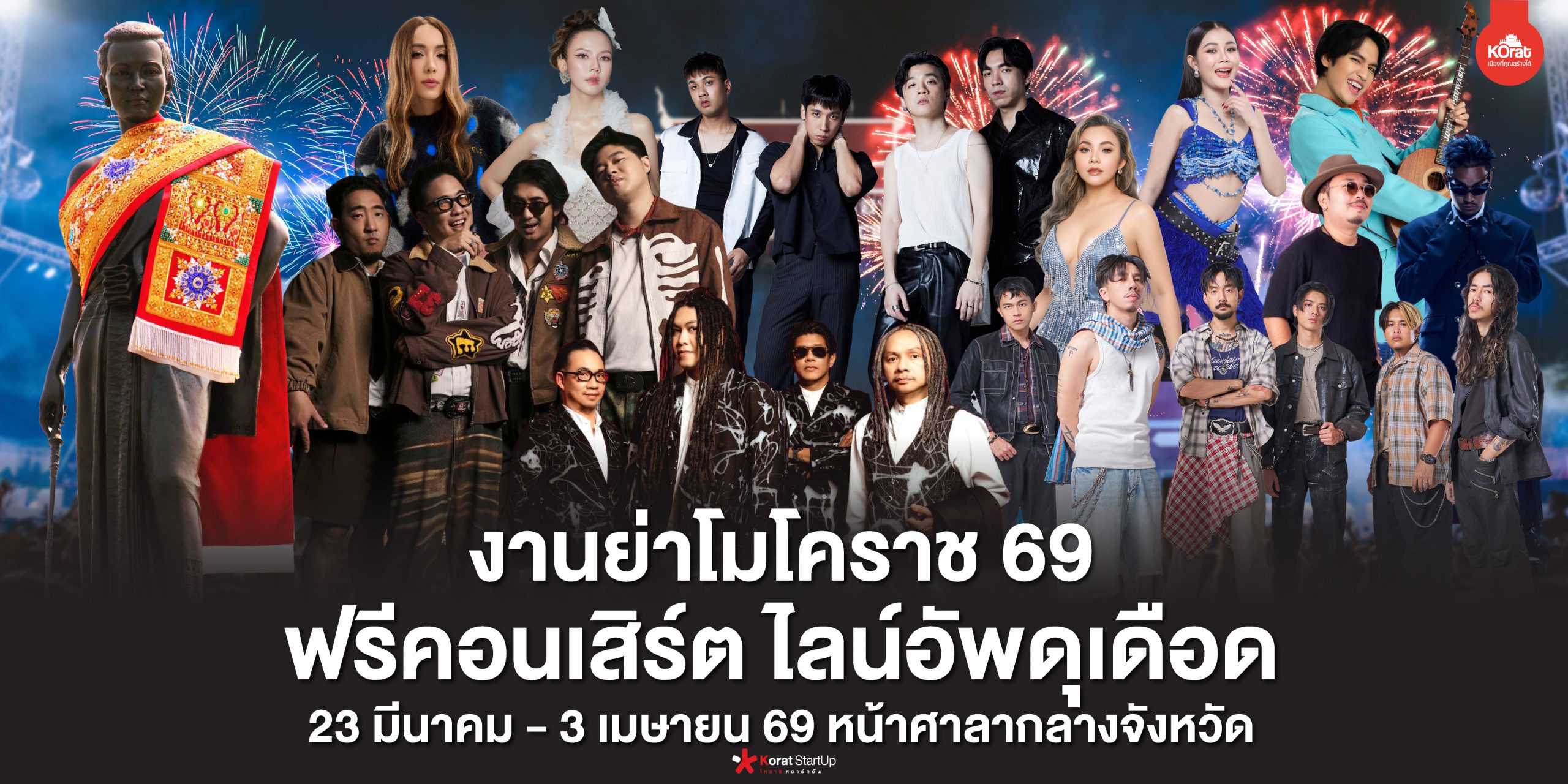 โคราชจัดยิ่งใหญ่!! ฟรีคอนเสิร์ตานย่าโมโคราช69 ไลน์อัพดุเดือด 📌 23 มีนาคม – 3 เมษายน 69 หน้าศาลากลางจังหวัด